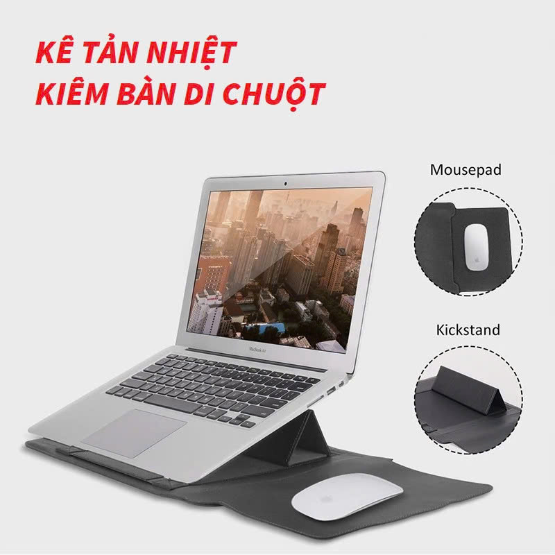 - Đa năng 2 trong 1: Nắp túi mở rộng làm lót chuột; phần gập tạo góc nghiêng tản nhiệt hợp lý khi làm việc.