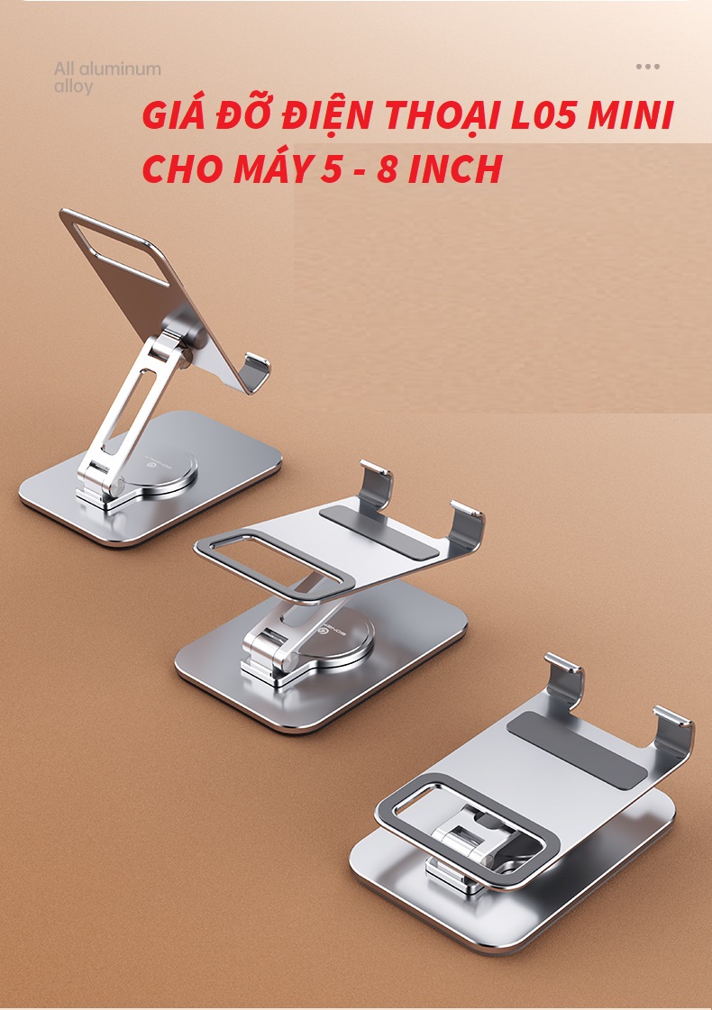 L05 là giá đỡ nhỏ gọn nhưng vô cùng chắc chắn, được làm từ hợp kim nhôm cao cấp. Thiết kế tinh tế, giúp cố định điện thoại và iPad vững vàng, phù hợp cho làm việc, học tập hay giải trí. Dễ dàng mang theo và sử dụng linh hoạt ở mọi không gian.